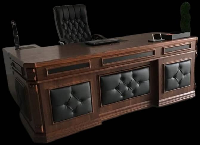 میز اداری وکیوم را می توان با چرم ، لمسه ، های گلاس و MDF سی ان سی شده تزئین نمود و جلوه خاصی به آن بخشید .